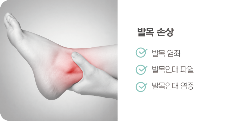 골절, 관절의 탈구, 인대의 염좌 혹은 파열,
