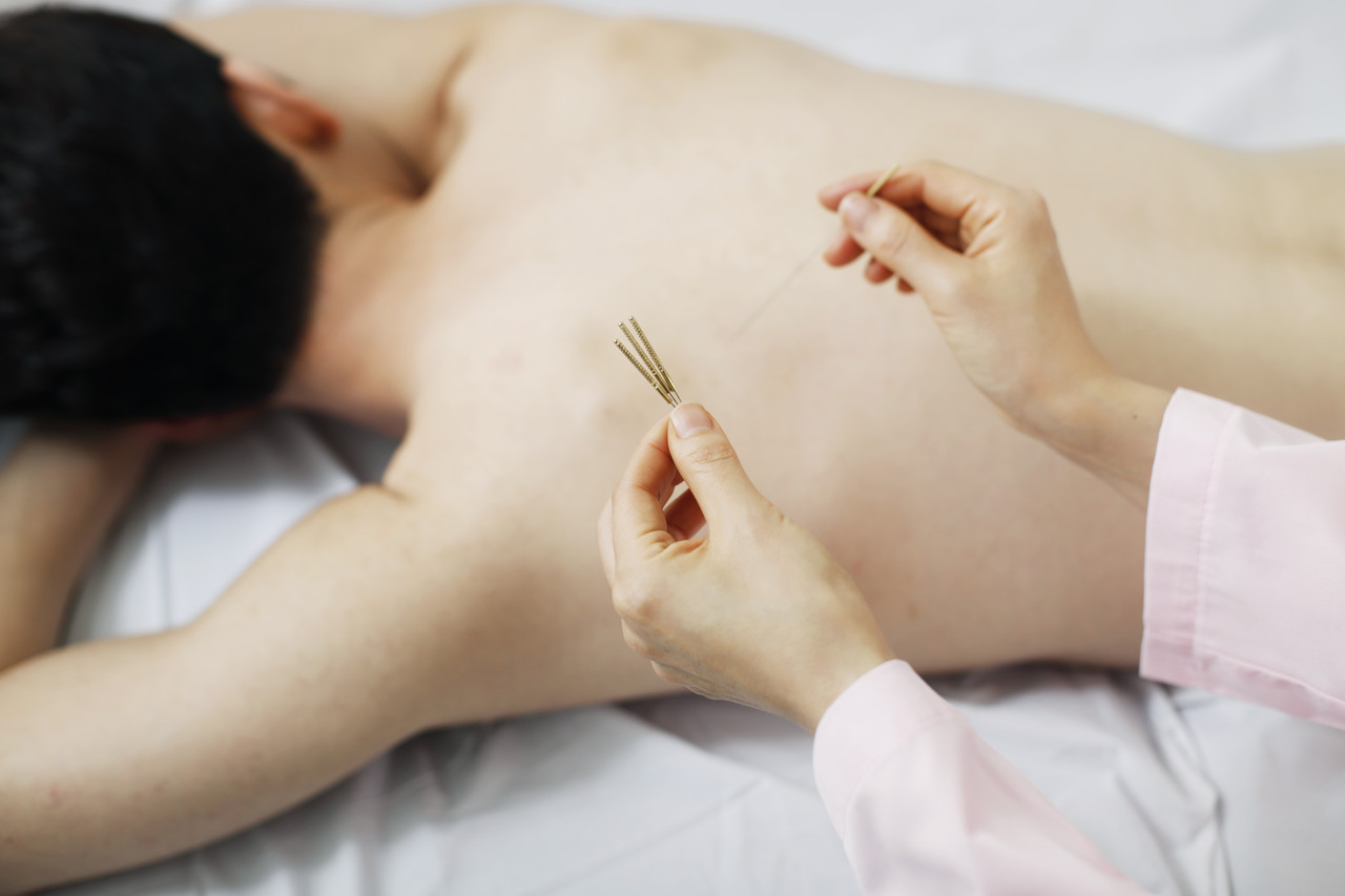 한의사가 손가락과 손바닥으로 밀고 당기는 과정을 통해