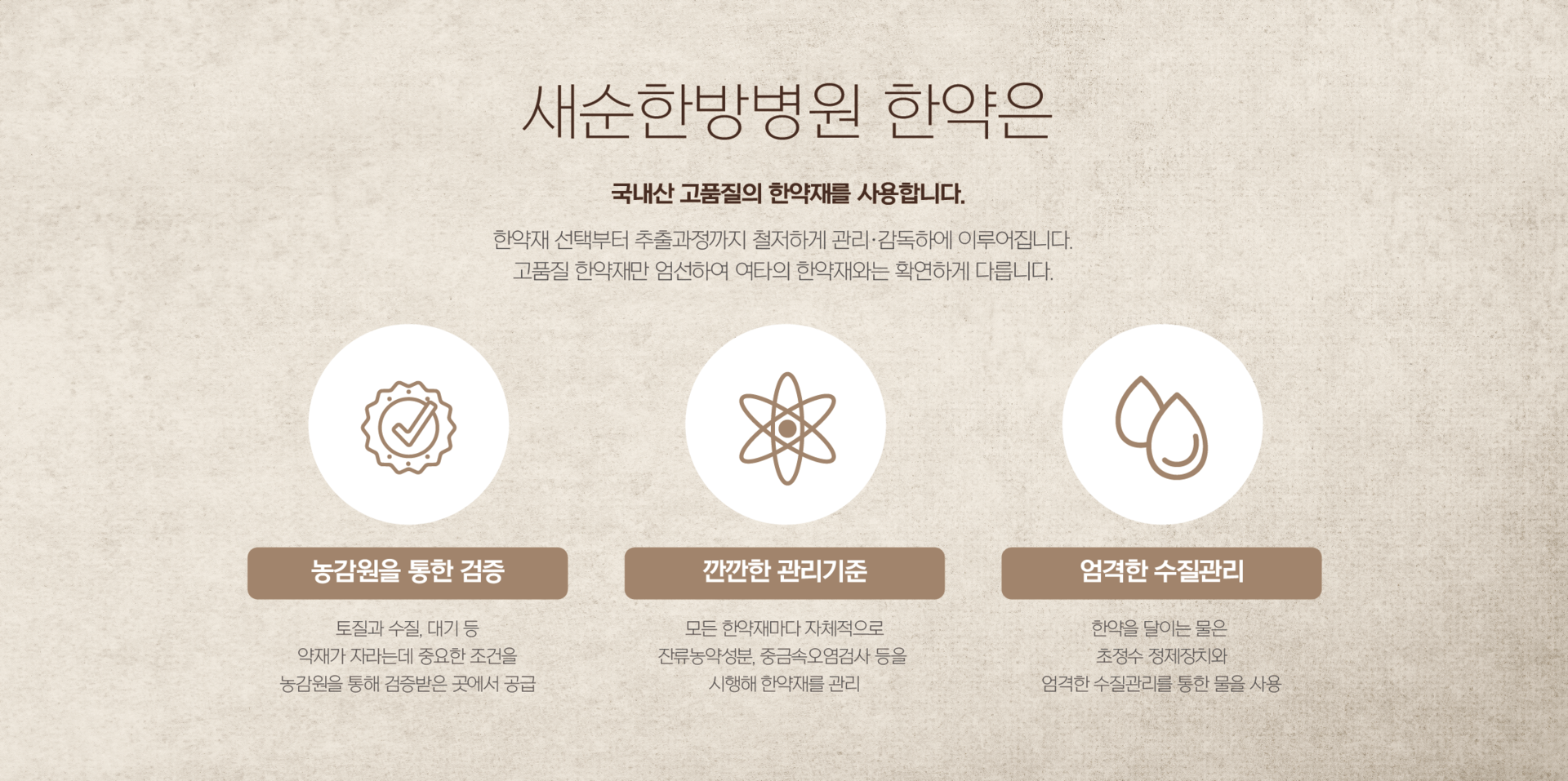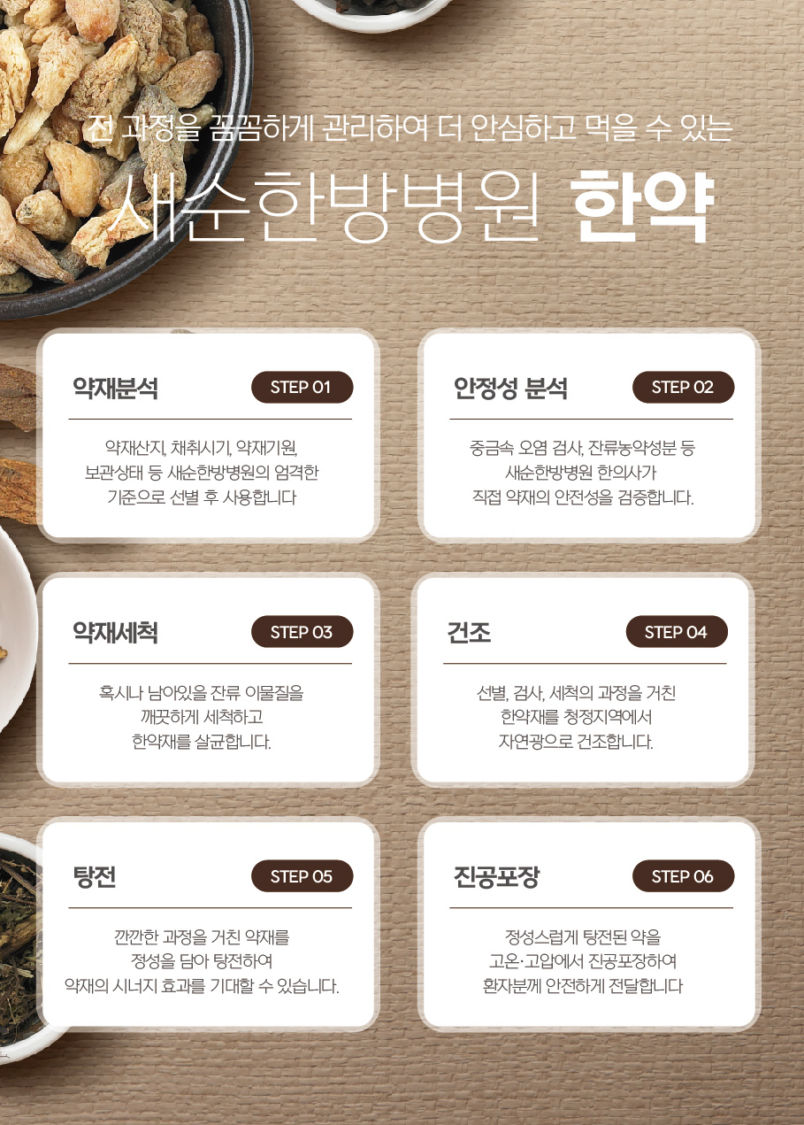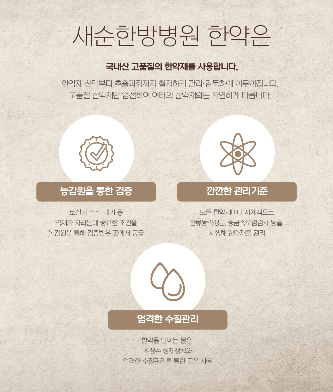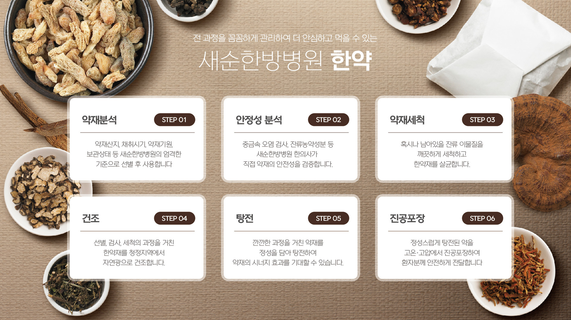 새순한방병원 한약은 개인의 증상과 체질을 정밀하게 분석하여 문진, 맥진, 복진 등의 한방검사와