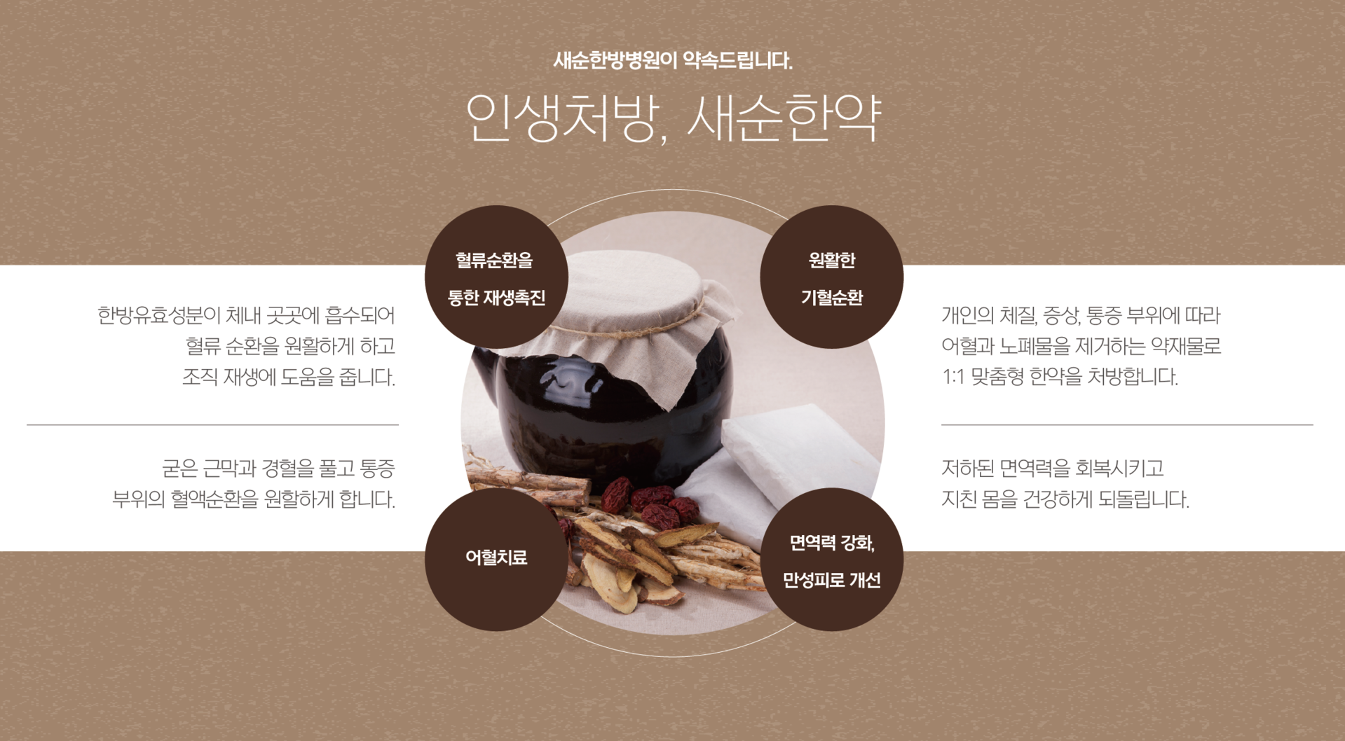 새순한방병원 한약은 뭉친 어혈을 풀고 염증을