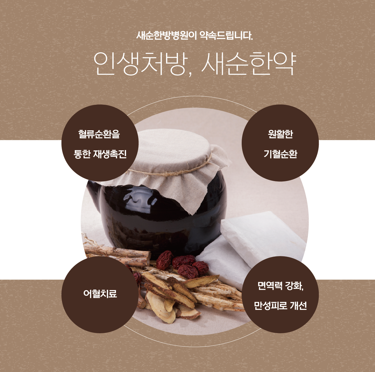 새순한방병원 한약은 뭉친 어혈을 풀고